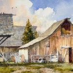 Watercolor Painting of barns and sheds
