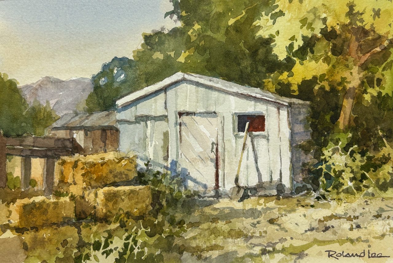 This is a plein air painting done of an old farm shed in Charleston Utah. I loved the scattered hay bales and the shovel leaning against the wall.