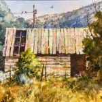 Watercolor Painting of Old Shed in the Snow